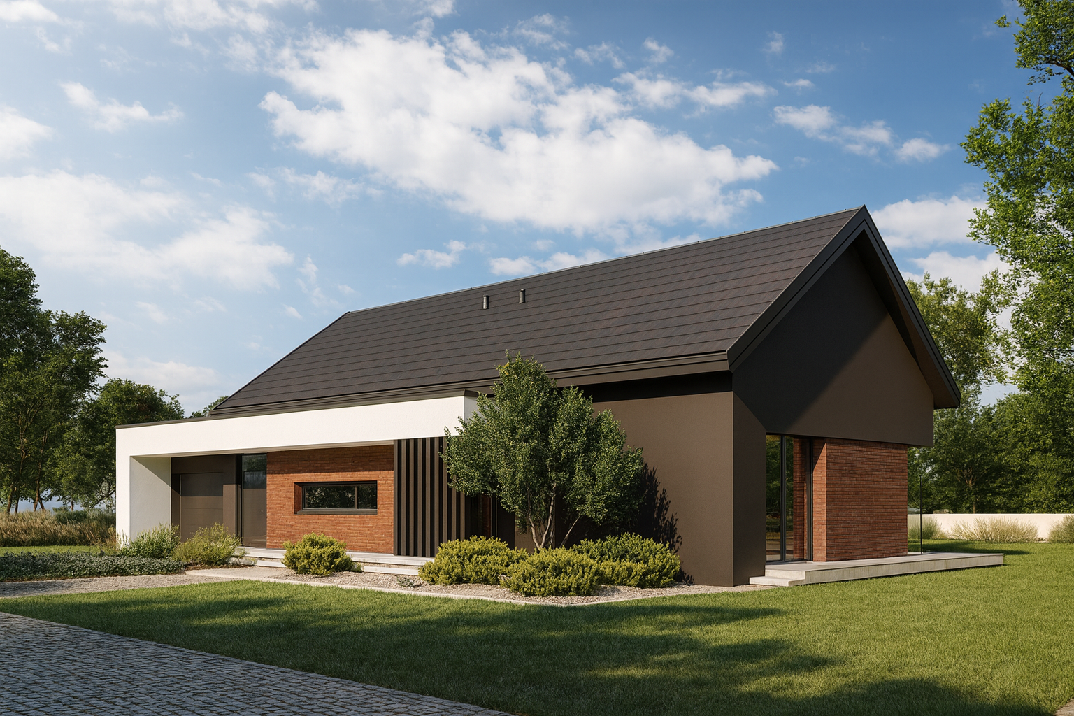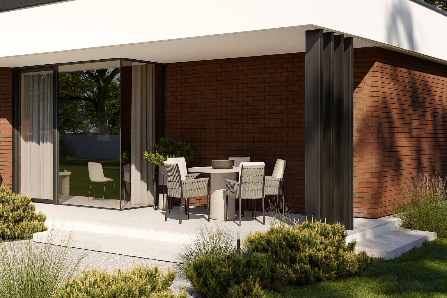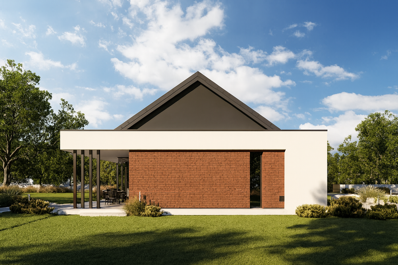 Fassade: Silikonputz kombiniert mit Klinkerfliesen.