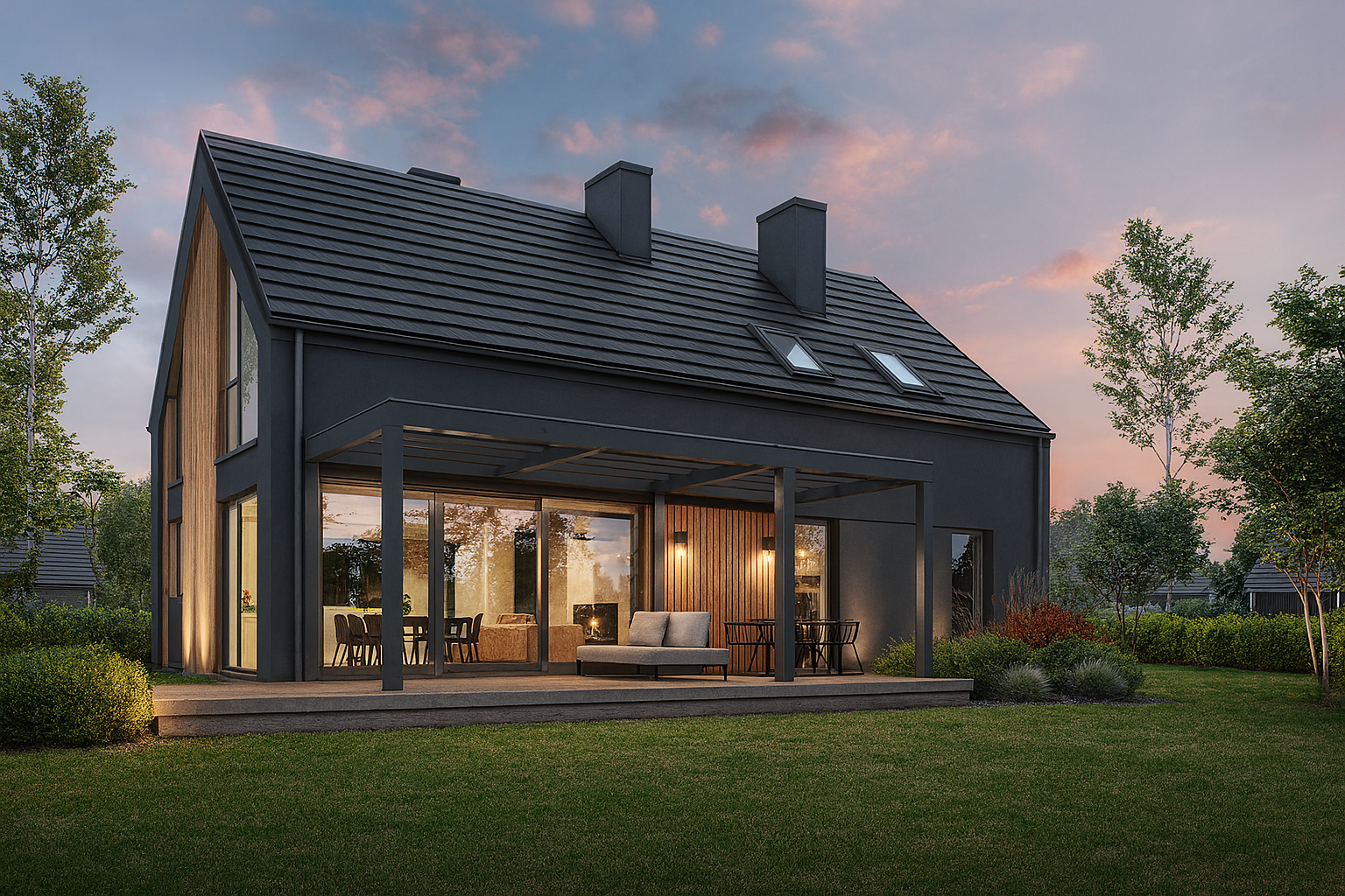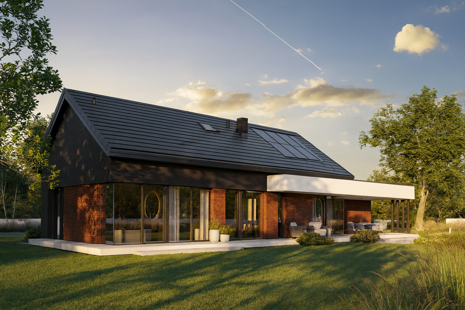 Dach: Satteldach mit CREATON Keramik- oder Zementziegeln mit CREATON VARIO Photovoltaikanlage,